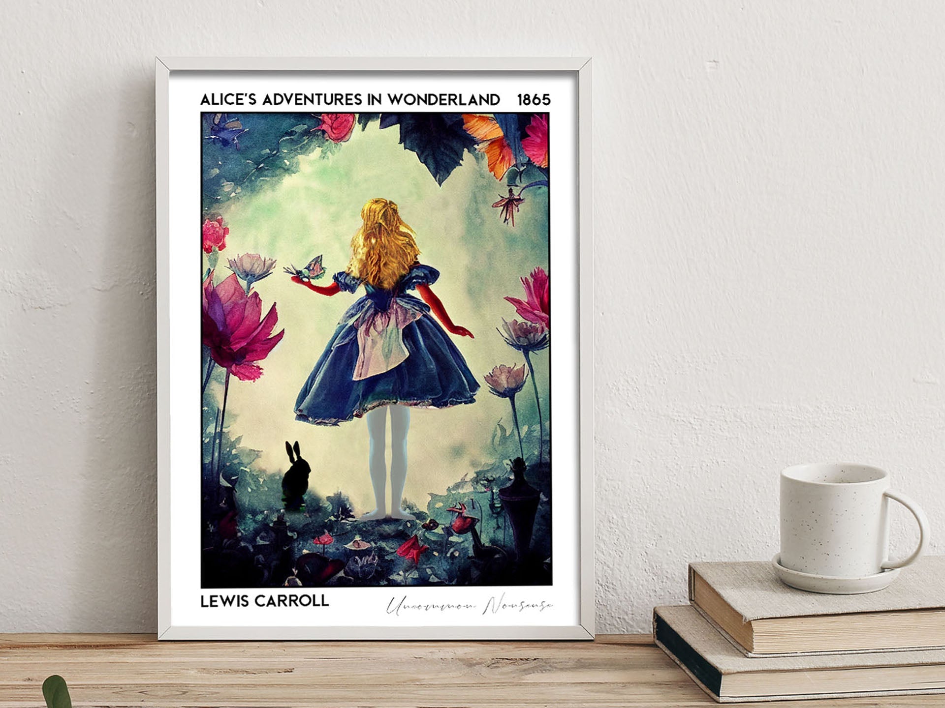 Take Lewis Carroll's Alice's Adventures in Wonderland beyond the shelf with our watercolour book poster. This book cover poster adds dark whimsy to any home décor - a great bookish gift for the book nook of book lovers!