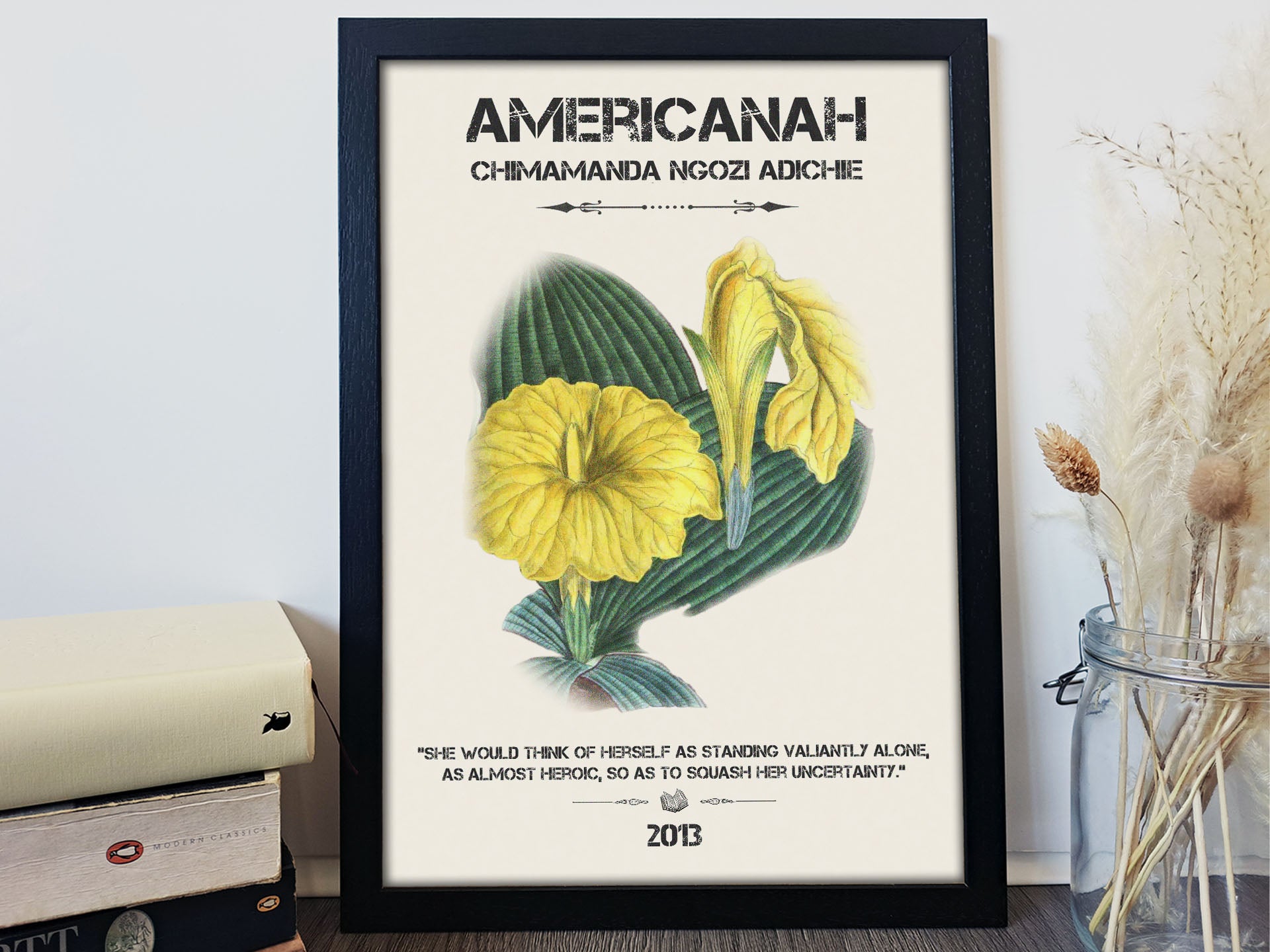 Take Chimamanda Ngozi Adichie's Americanah beyond the shelf with our book poster. This bookish print gives identity to any home décor - a great bookish gift for the book nook of book lovers!