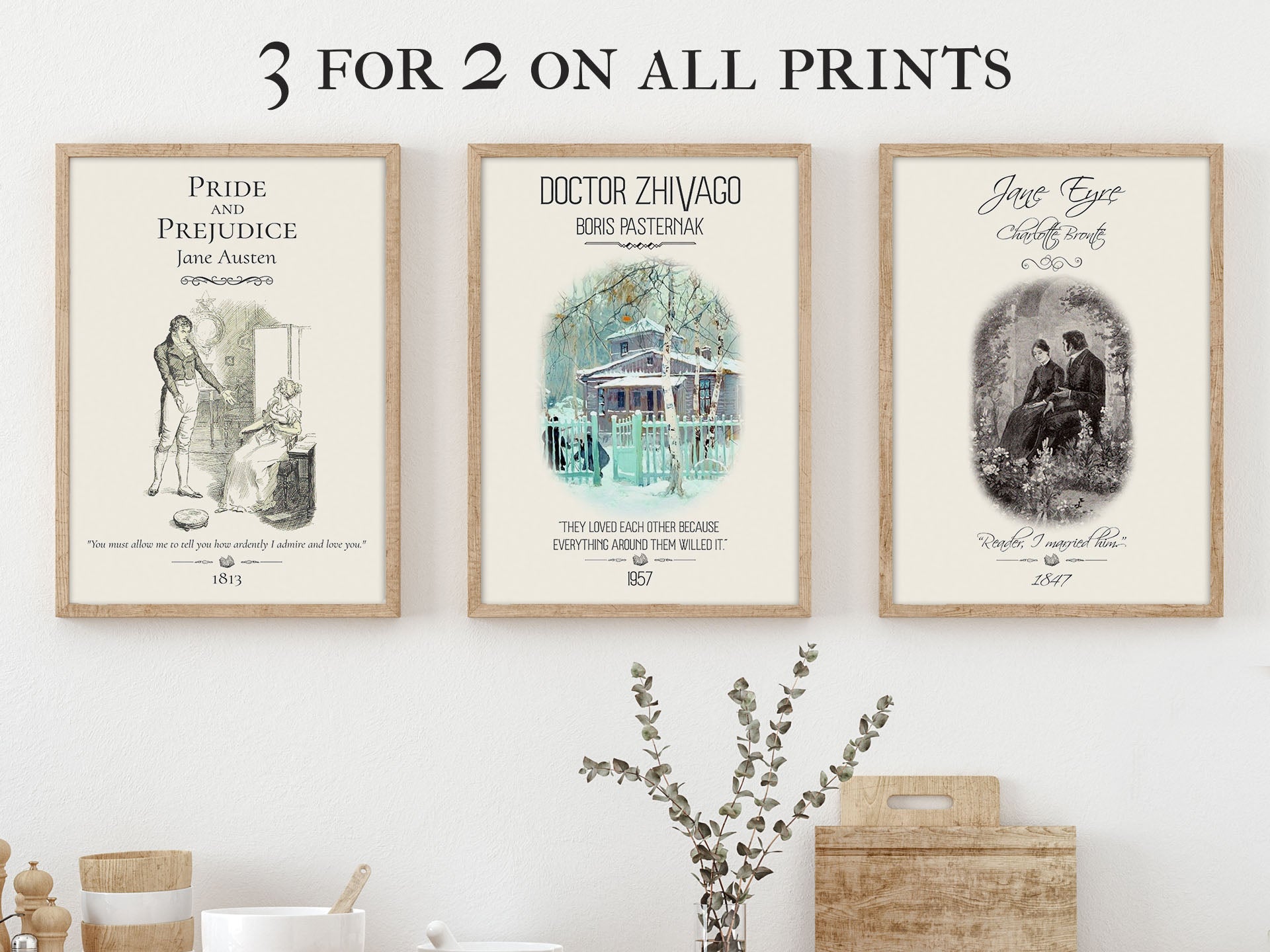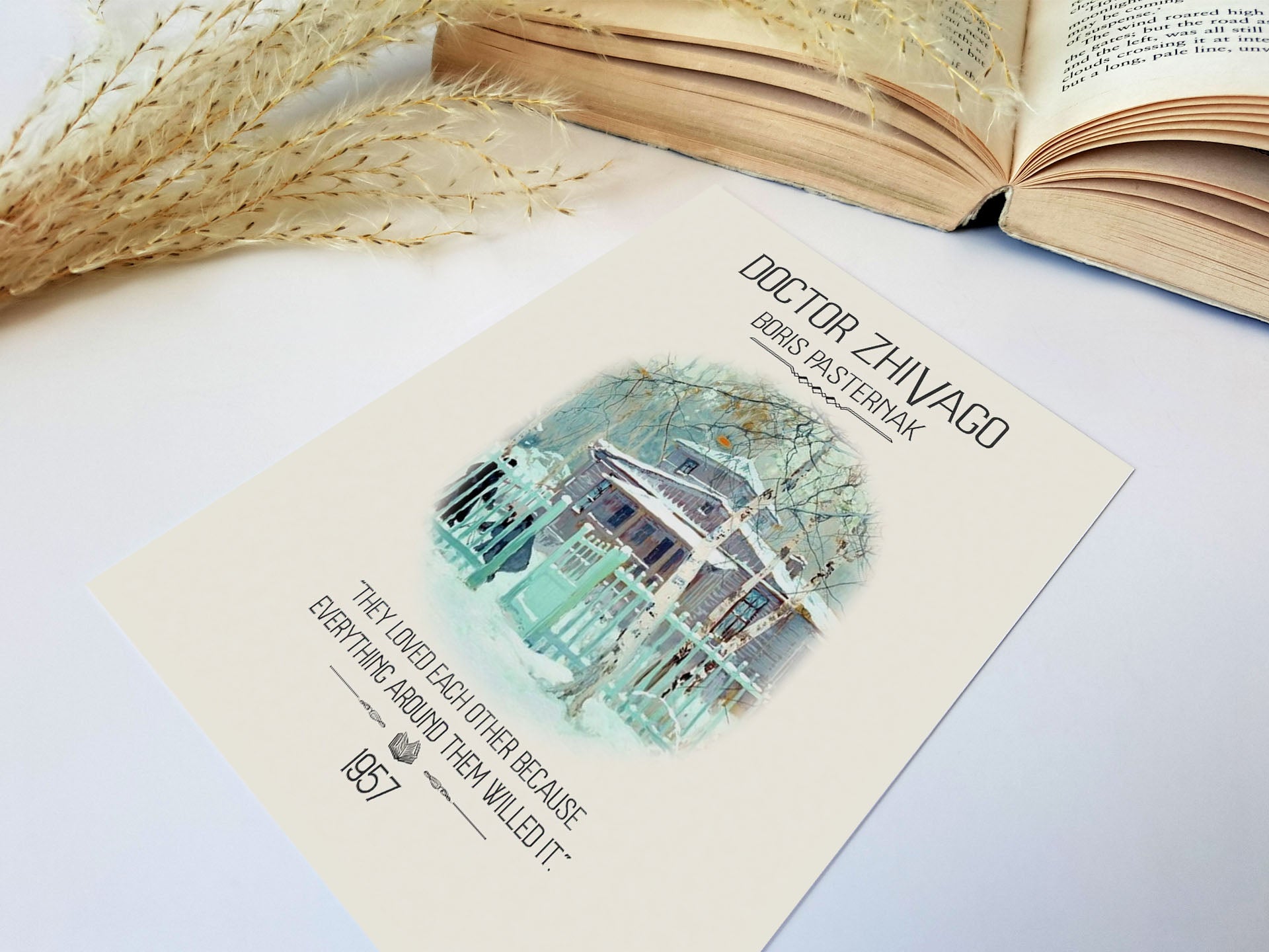 Our literary print uses a watercolour illustration that is unmistakenly Russian. The trees, the clouds, and even the piercing snows of Russia push the couple together. While the ice-cold fence shows the need to protect the couple from the dangers outside their fragile sanctuary. Our chosen Doctor Zhivago quote reinforces this concept and expresses the love at the centre of this tumultuous story. This results in a vintage book poster perfect for readers and booklovers looking for literary gifts to curate an authentic bookish decor experience that stays true to this literary classic.