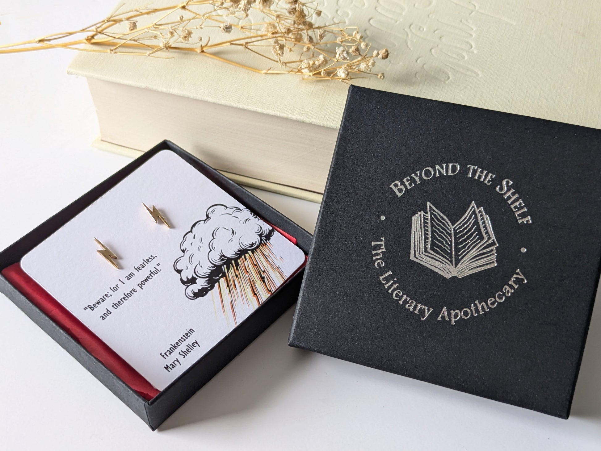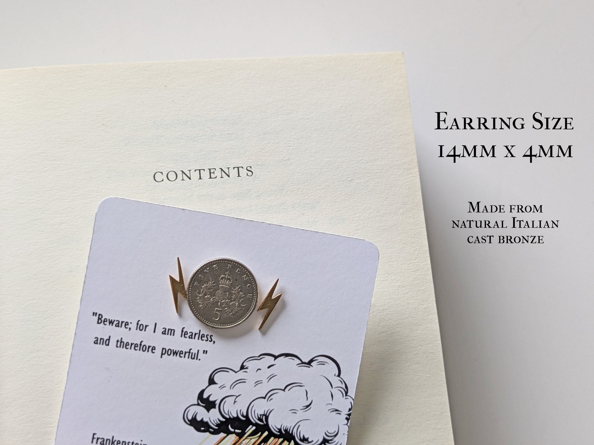 Realise your true power with our lightning bolt earrings inspired by Mary Shelley’s Frankenstein. Crafted from Italian bronze, these book themed earrings are perfect for gothic readers or those who like a powerful symbol.