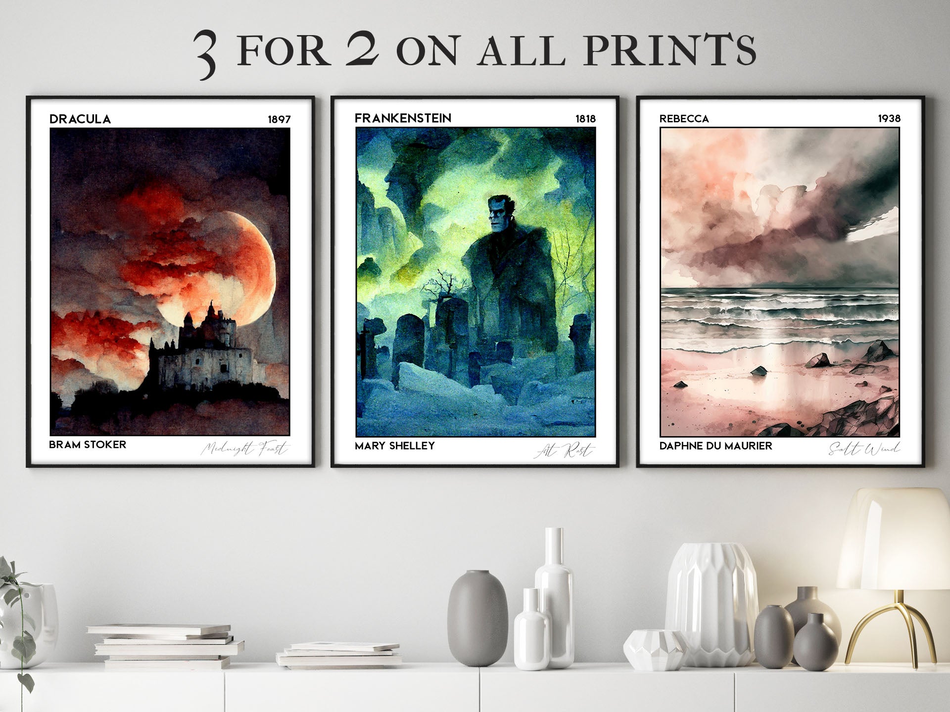 Take Mary Shelley's Frankenstein beyond the shelf with our watercolour literary print. This book cover Halloween poster gives peace to any home décor - a great bookish gift for the book nook of book lovers!
