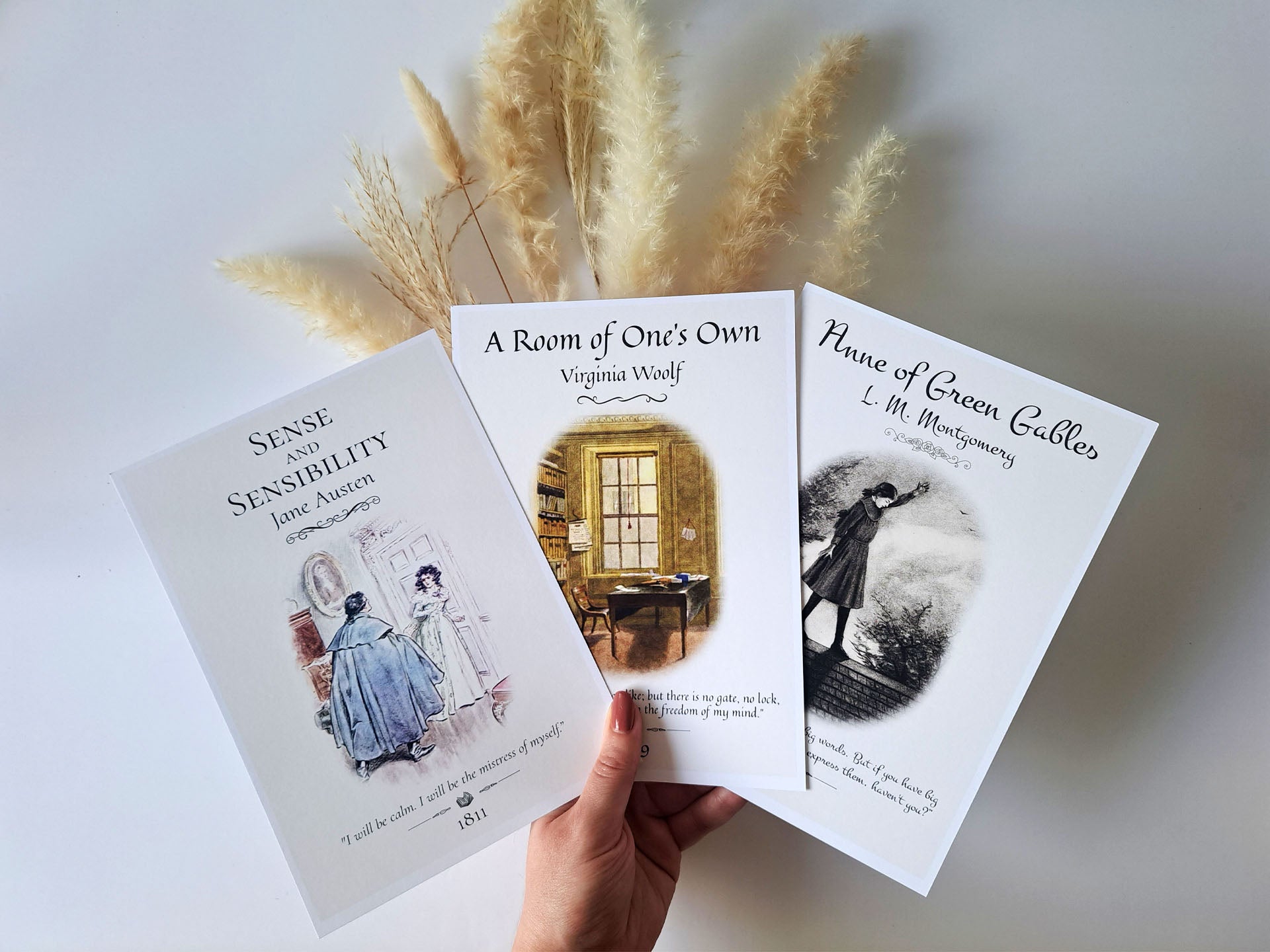 Our Freedom of Thought Gallery Wall Set draws inspiration from great female writers and uses their voices to extend the possibility of expression to new generations. We use the innocent playfulness of Anne of Green Gables' appreciation for expression, A Room of One's Own desire for the means and opportunities to create, and Sense and Sensibilities' call to be in charge of one's destiny. This results in bookish posters that celebrate literature's ability to both challenge and create concepts that can then be moulded or even challenged by future writers. They are literary posters faithful to the themes of these literary classics and perfect for readers and book lovers looking for literary gifts to curate an authentic bookish decor. They are a reminder that freedom of thought, and the means to express that freedom, are of utmost importance when creating a better world.