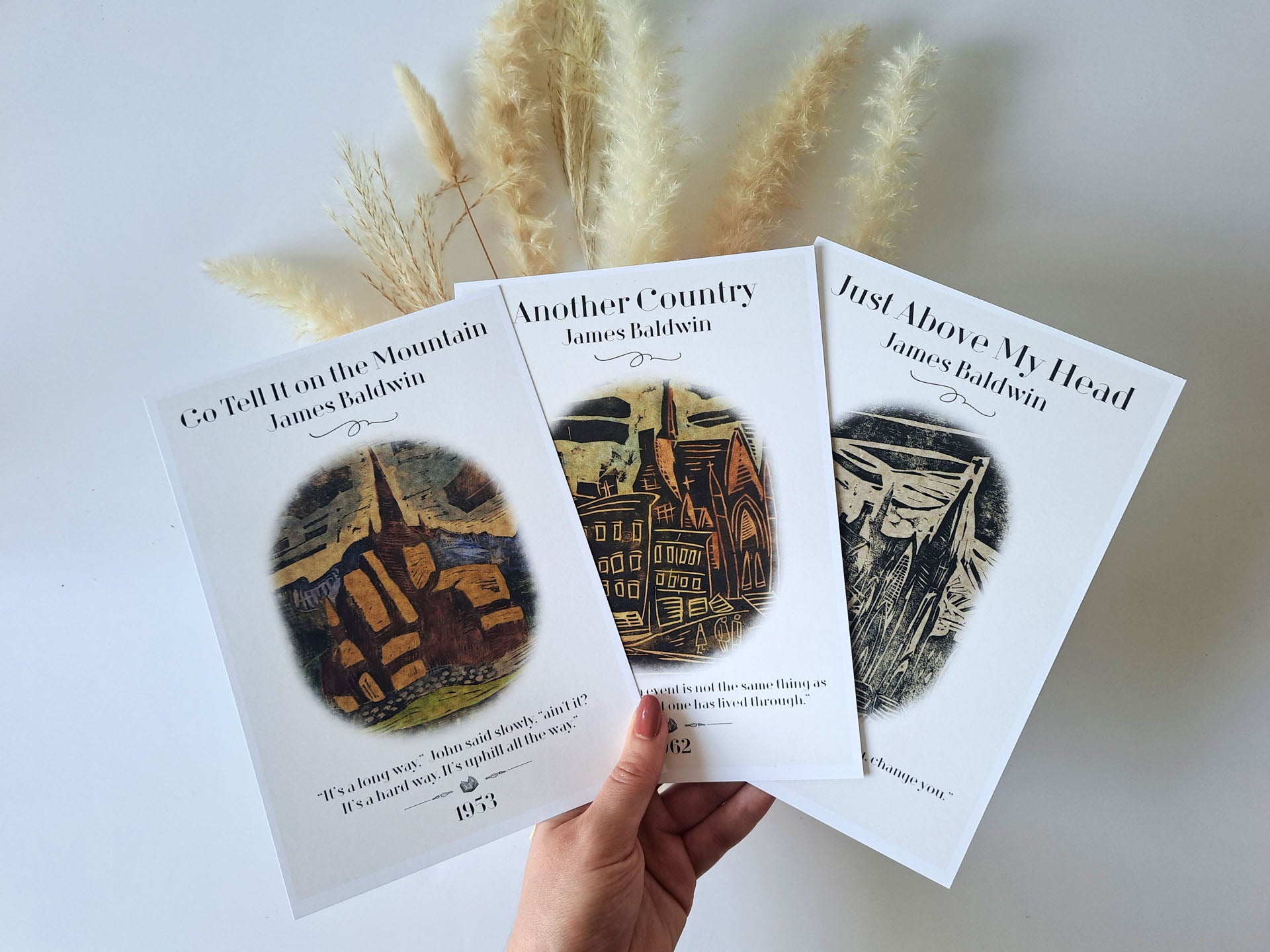 Our Harlem's LegacyGallery Wall Set uses Harlem Renaissance art and James Baldwin quotes to create an inspiring book poster pack. They are bookish prints perfect for imbuing your bookish decor with justice- a booklover gift great for any reading corner.
