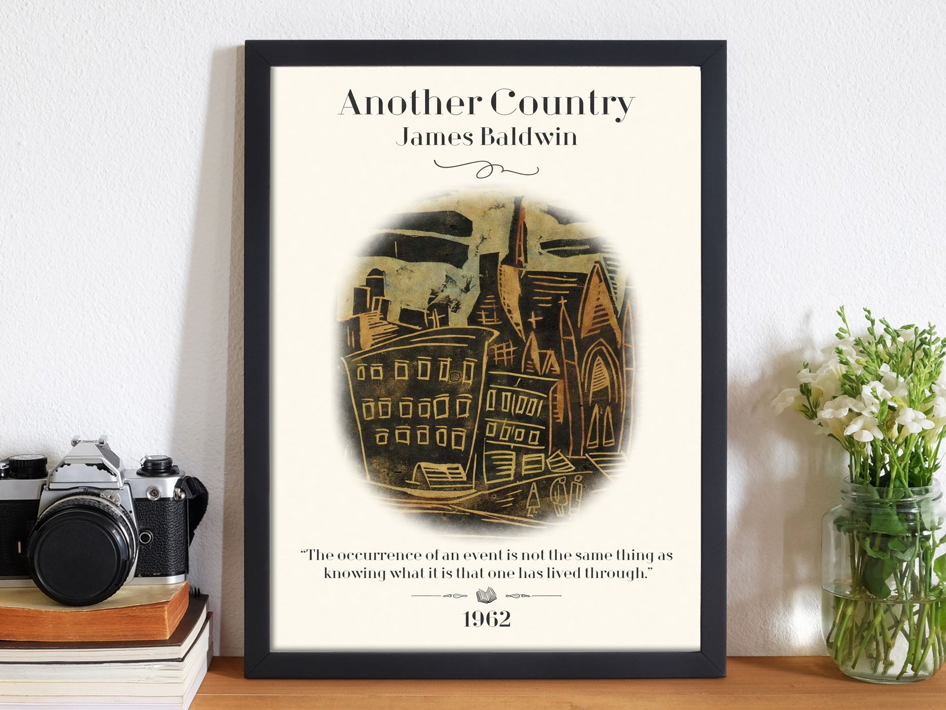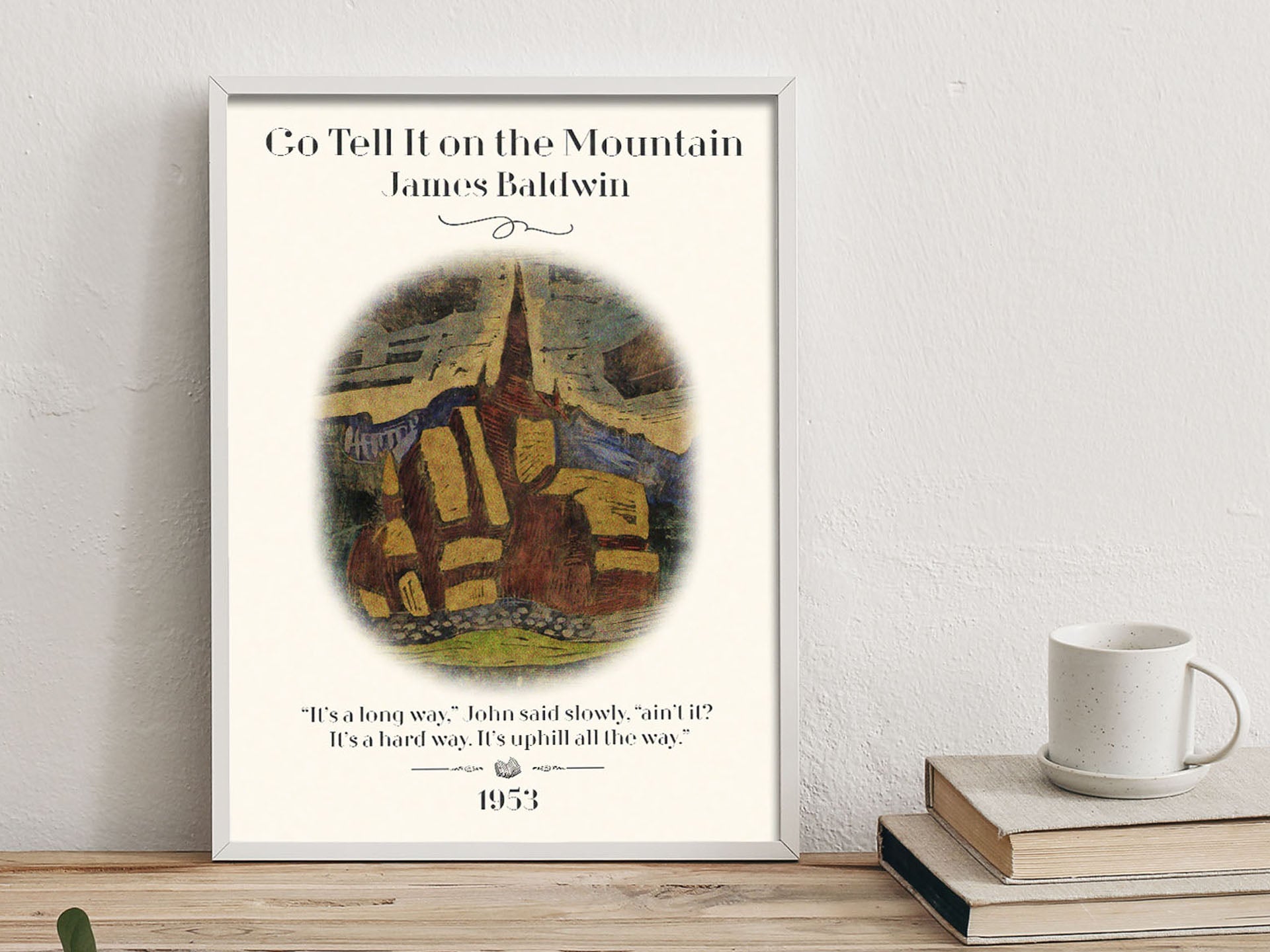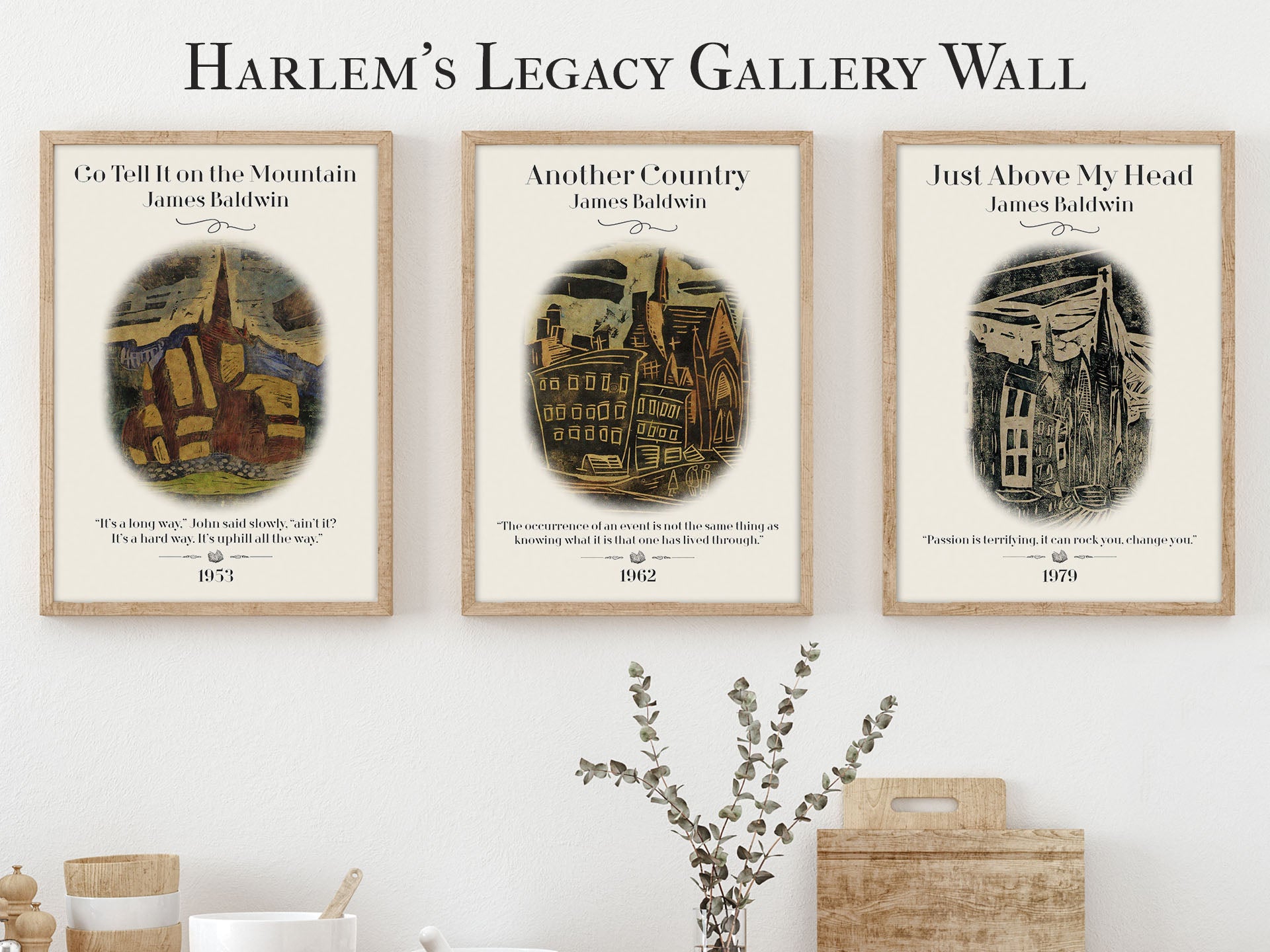 Our Harlem's Legacy Gallery Wall Art Set evokes the powerful struggle for self at the heart of Baldwin's works in his use of powerful rhetoric and lyricism. We use the tensions of change of Go Tell It on the Mountain, the harsh realities of Another Country , and the search for acceptance of Just Above My Head.