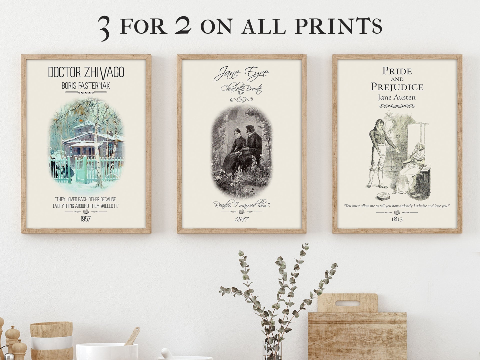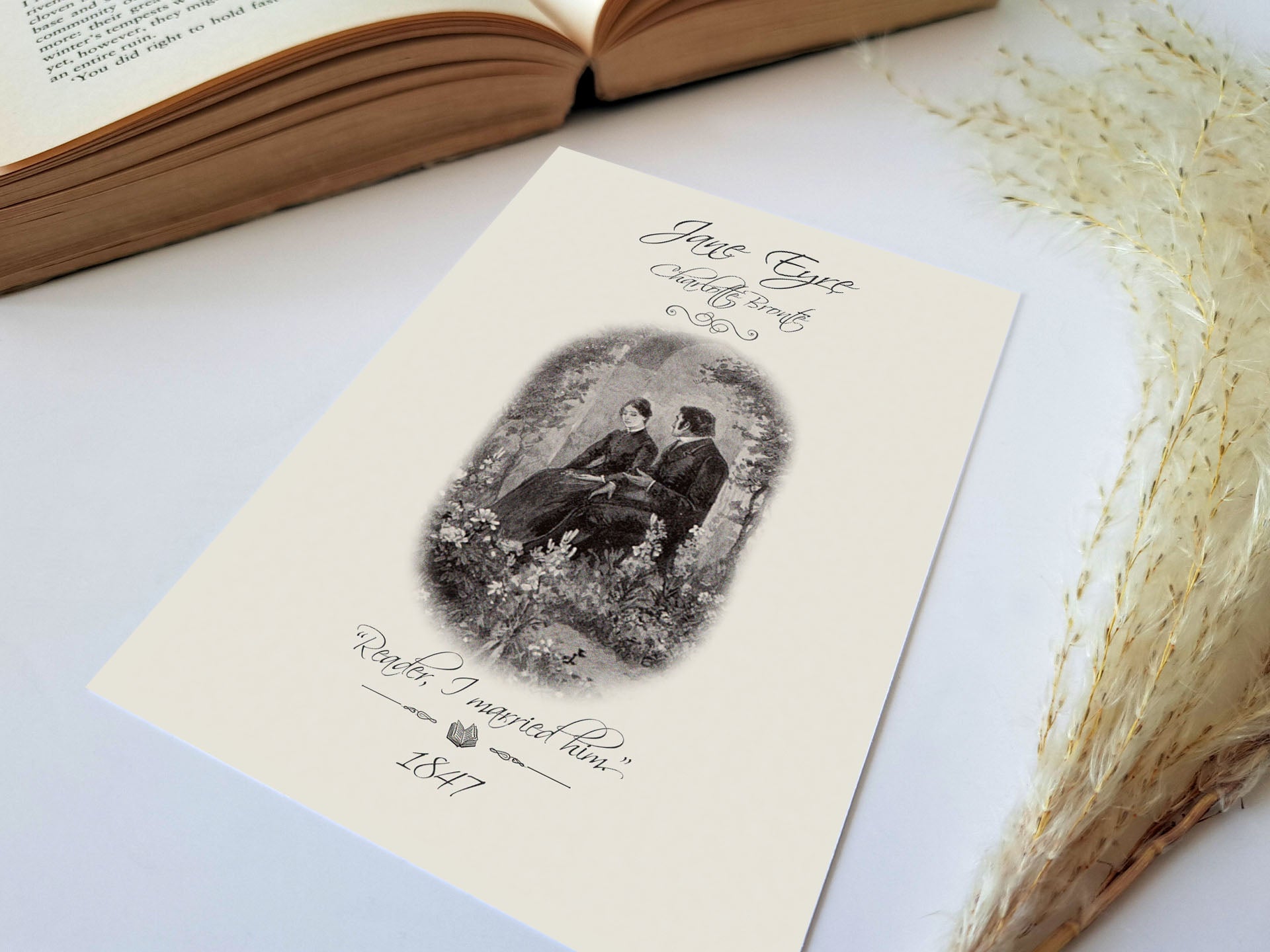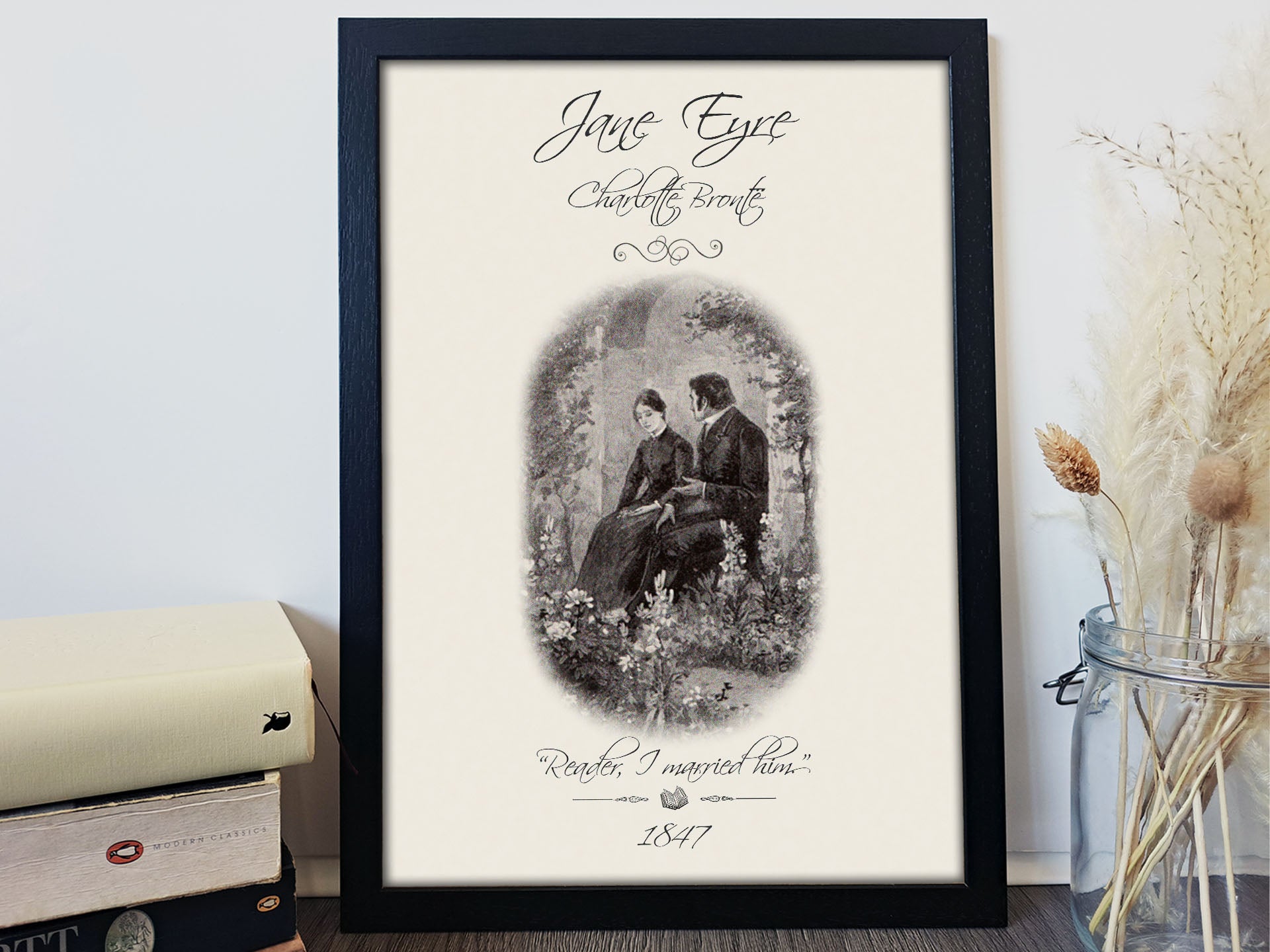Our bookish print emphasises the romantic and feminist aspects of this literary classic. We use a romantic illustration from the original text and a Charlotte Brontë quote: a famous line both romantic and groundbreaking in its reminder to the reader that it was Jane who decided to marry Rochester. This results in a vintage book poster perfect for readers and book lovers looking for literary gifts to curate an authentic bookish decor experience that stays true to the themes of this classic literature.