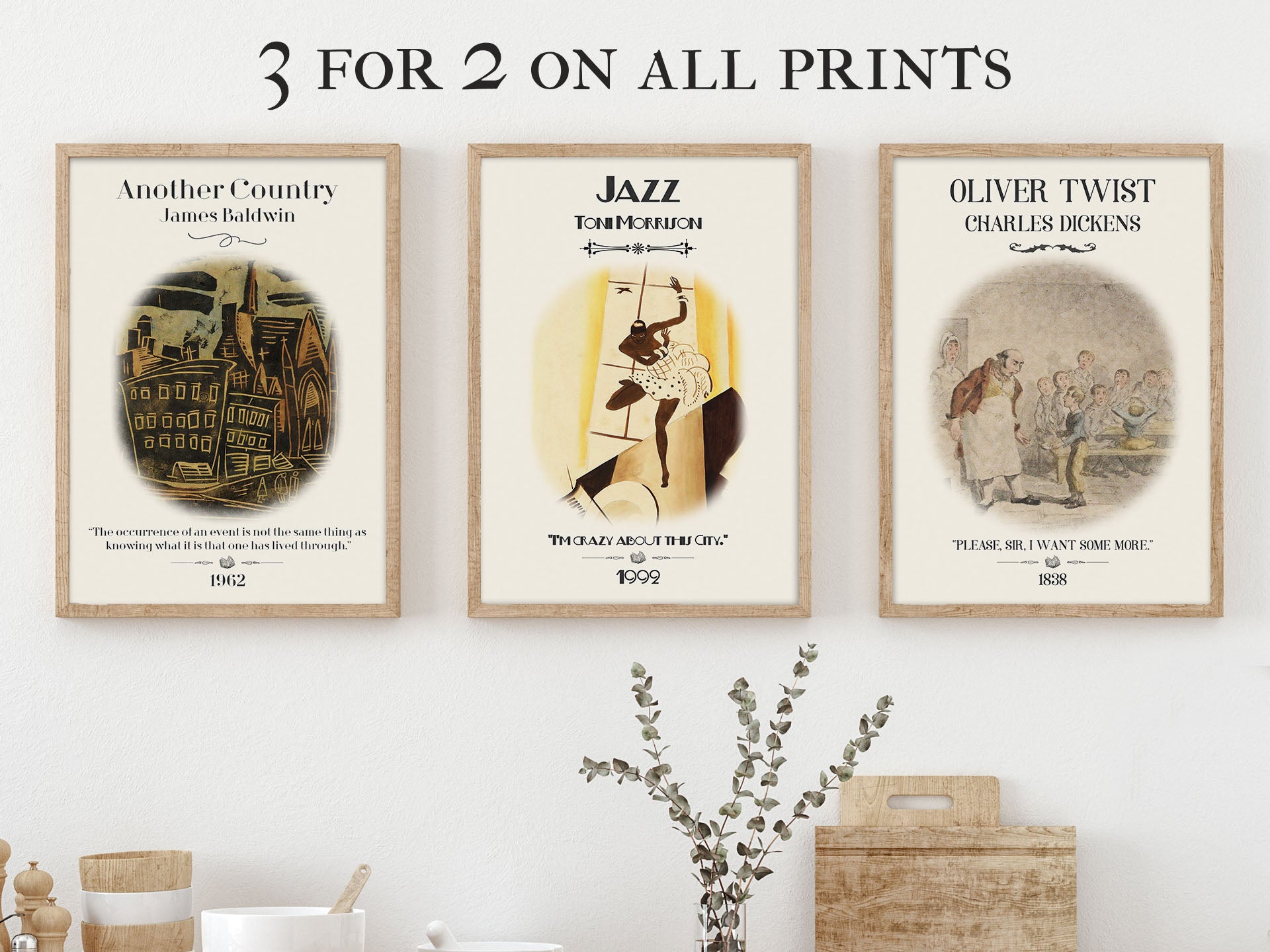 Our bookish print reflects the musicality of Jazz. We used Harlem Renaissance artwork and an upbeat Toni Morrison quote to capture fleeting sensuous moments of celebration. This results in a vintage book poster perfect for readers and book lovers looking for literary gifts to curate an authentic bookish decor experience that stays true to the themes of this classic literature.