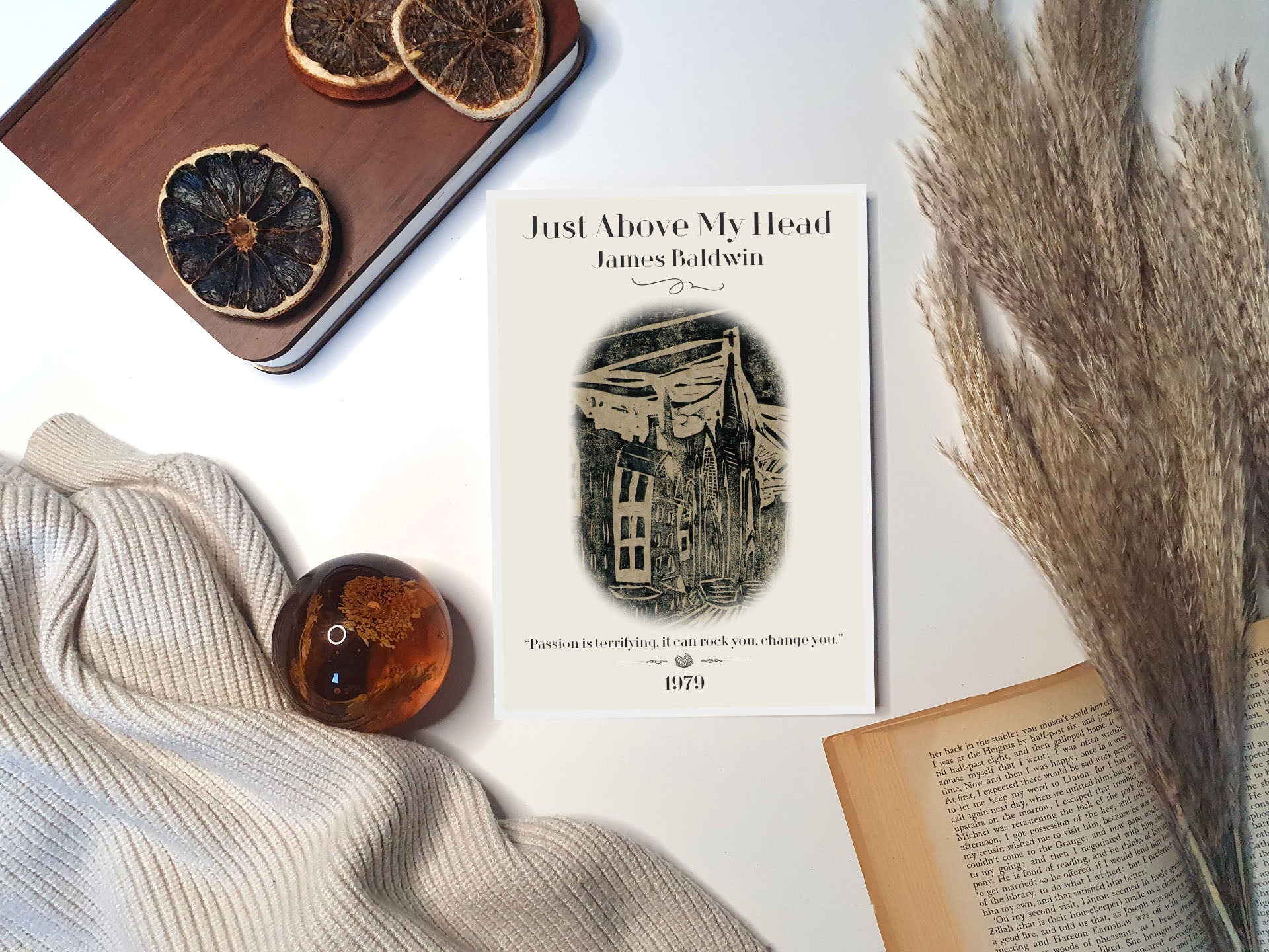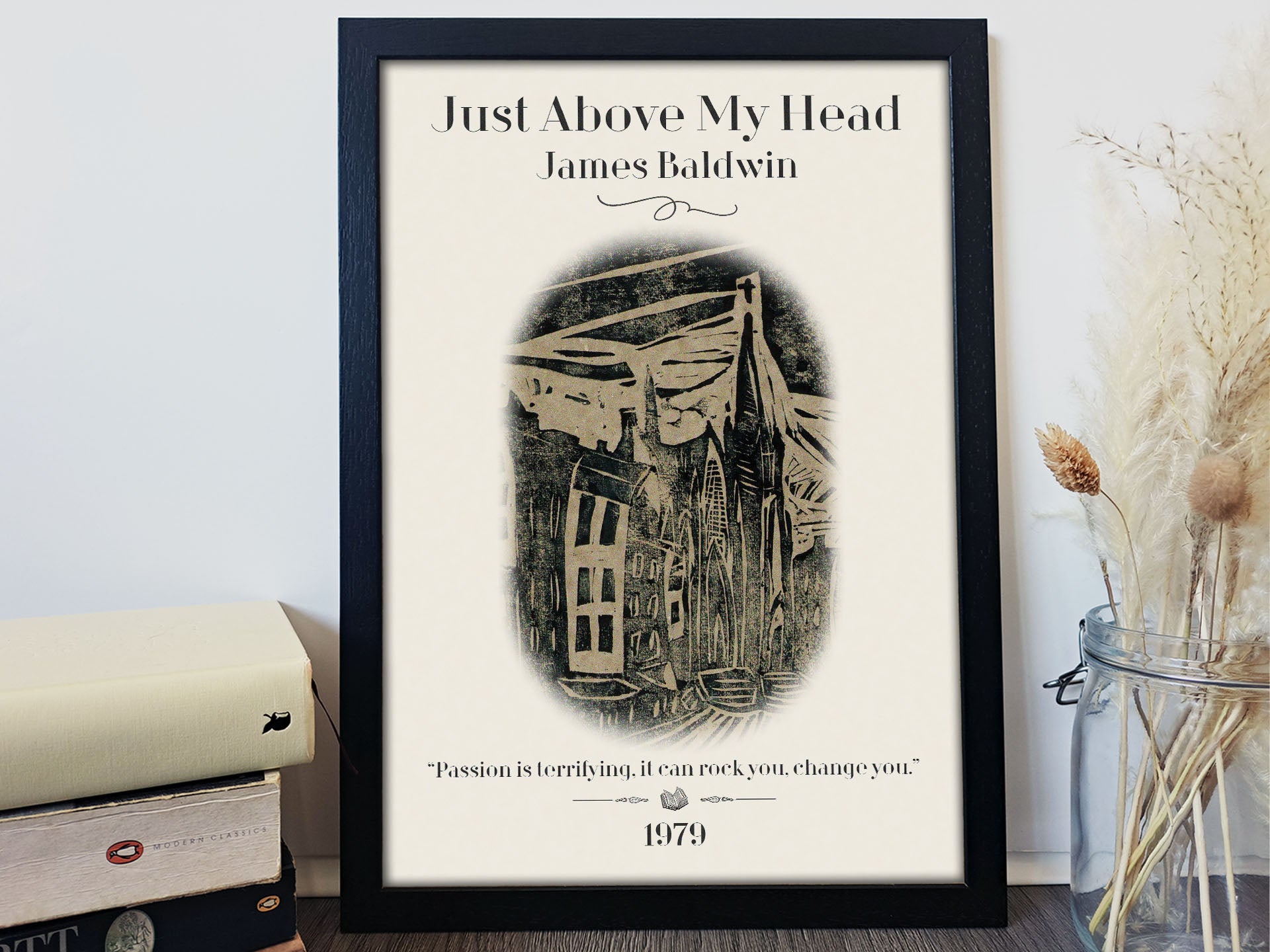 Take James Baldwin's Just Above My Head beyond the shelf with our book poster. This book cover art print brings passion to any home décor- a great bookish gift for the book nook of book lovers!
