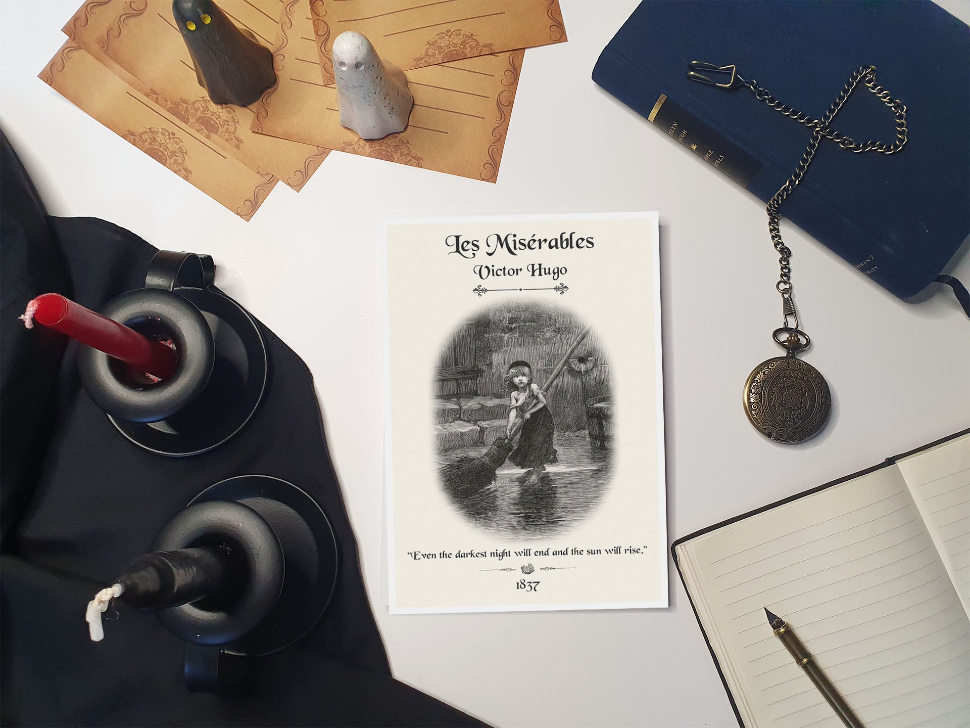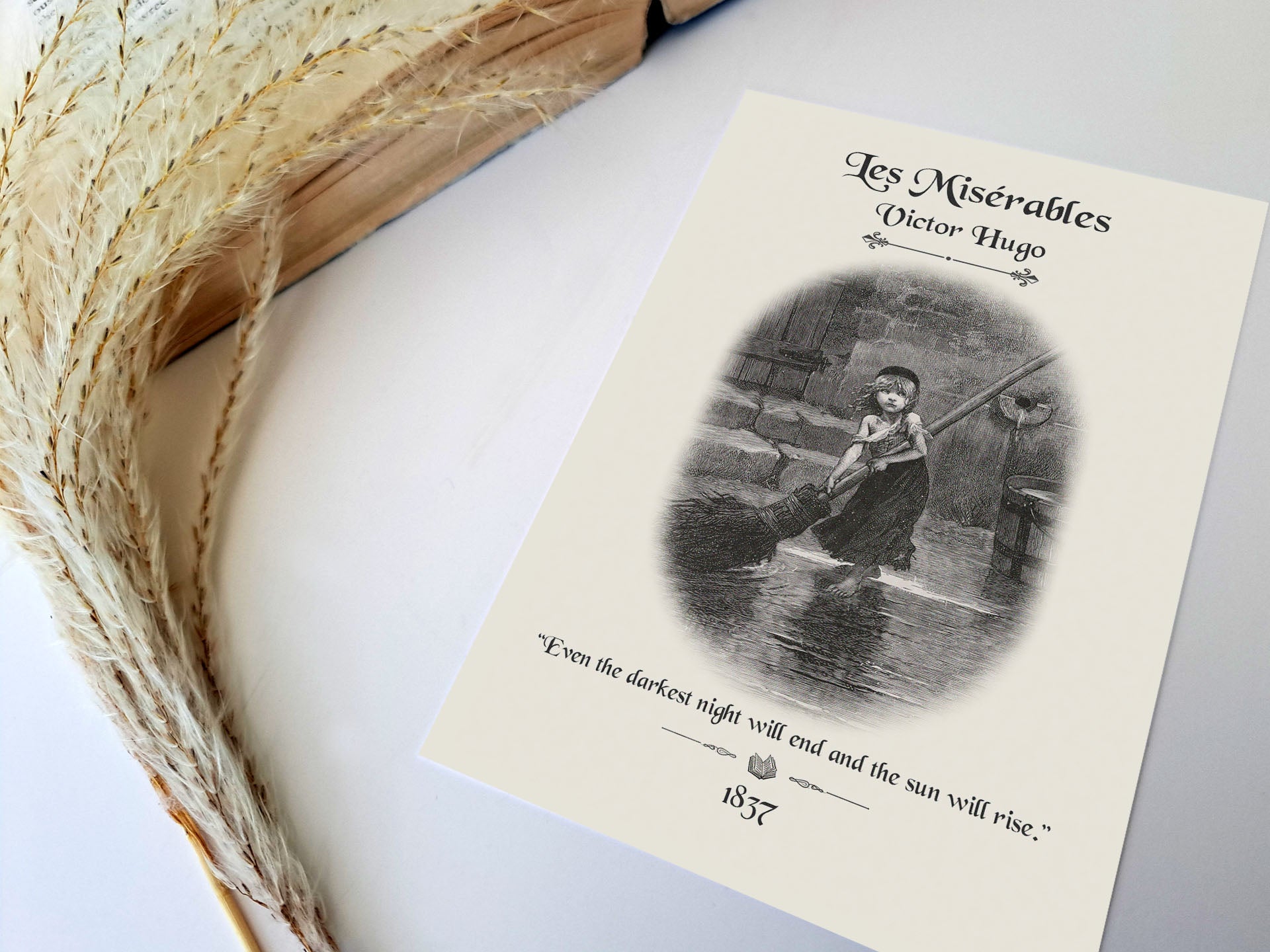 Our bookish print uses the famous image of Cosette and uses a Les Misérables quote to remind us of that always-present glimmer of hope that keeps us going in difficult times. This results in a vintage book poster perfect for readers and book lovers looking for literary gifts to curate an authentic bookish decor experience that stays true to the themes of this classic literature.