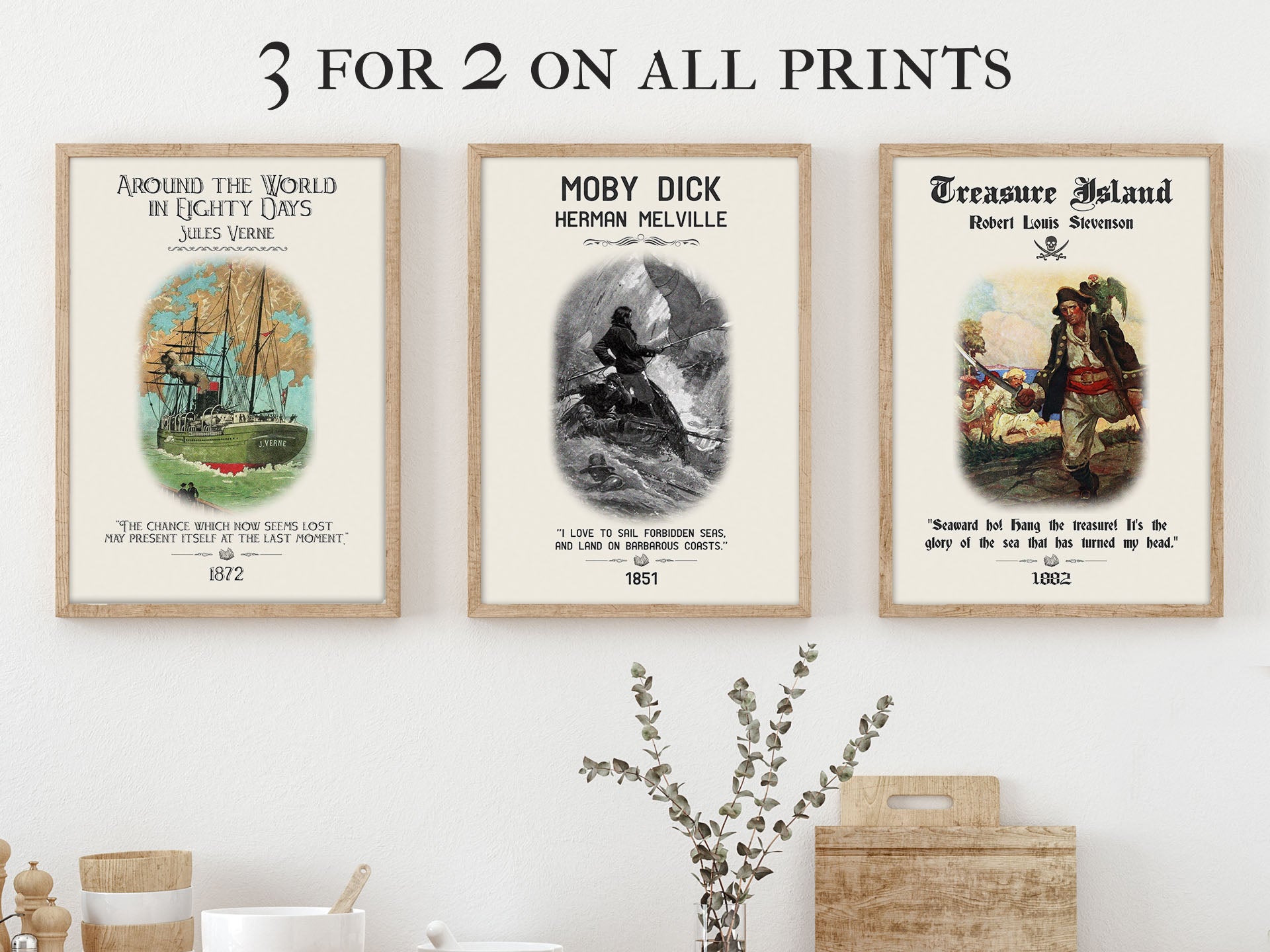 Take Herman Melville's Moby Dick beyond the shelf with our book poster. This book cover art print adds obsession to any home décor - a great bookish gift for the book nook of book lovers!