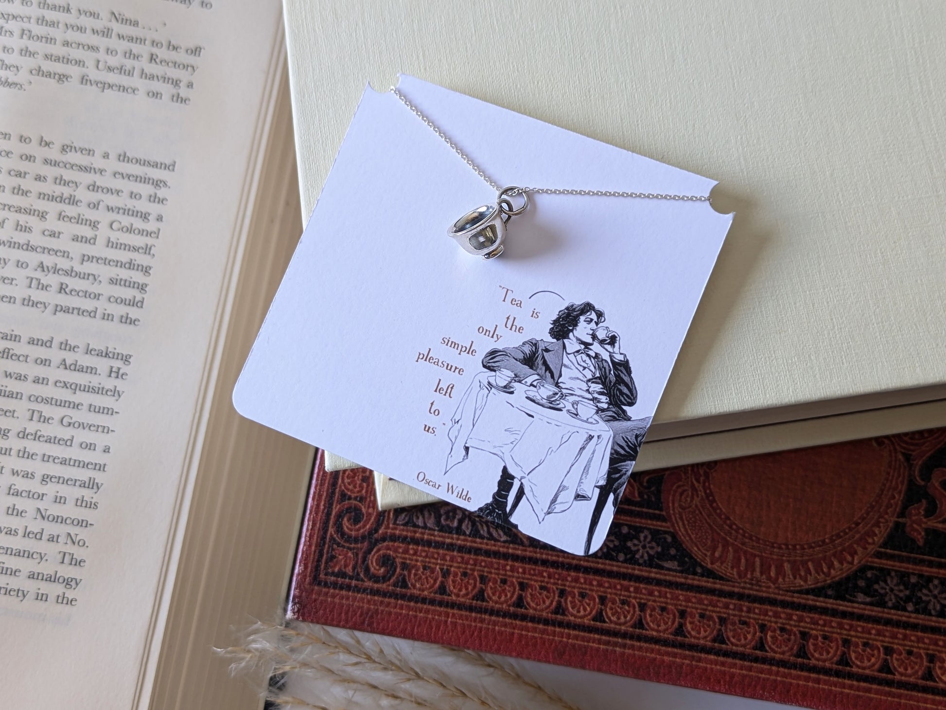 This teacup necklace is inspired by Oscar Wilde's quote “Tea is the only simple pleasure left to us."