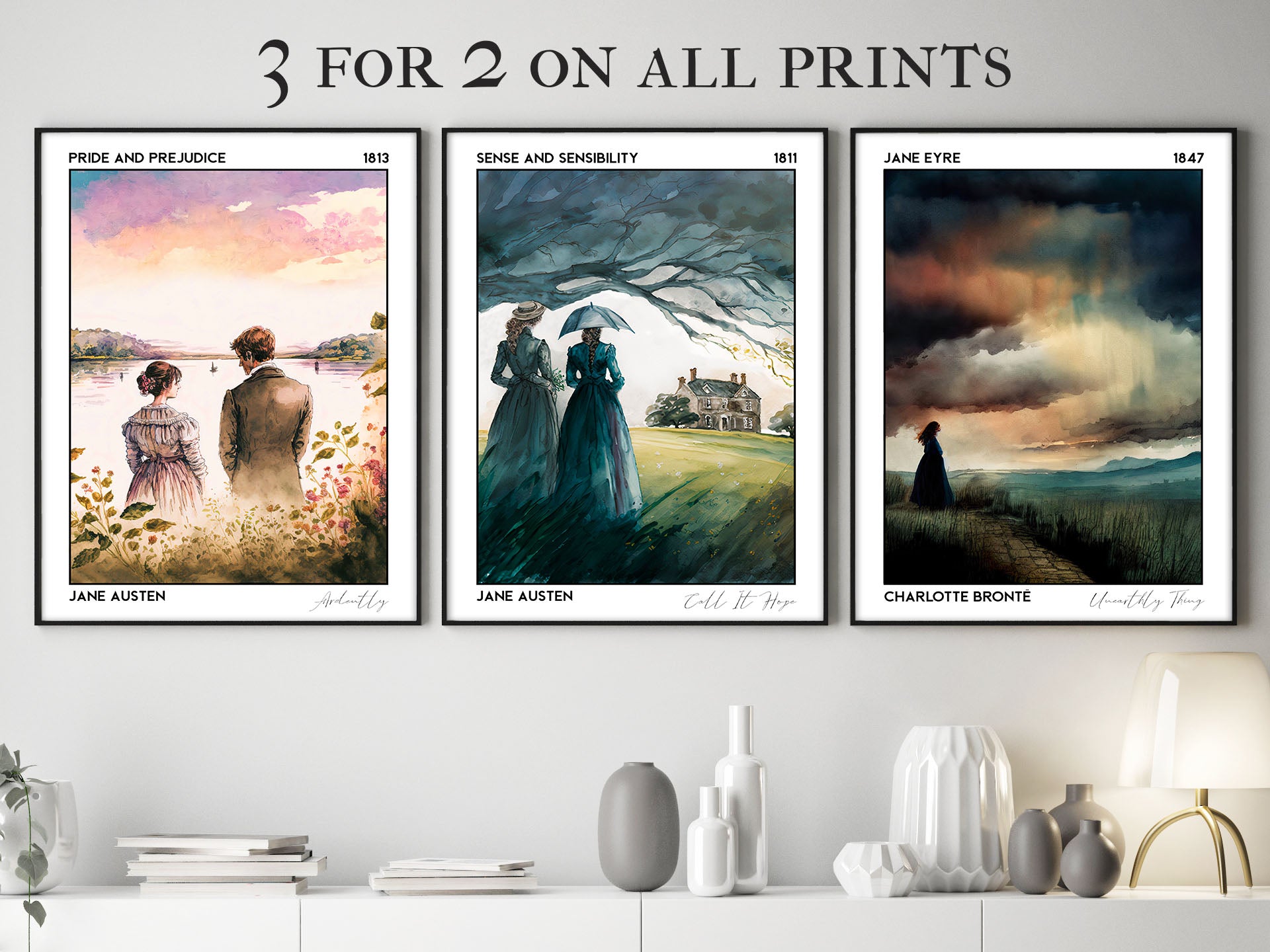 Take Jane Austen's Sense and Sensibility beyond the shelf with our watercolour book poster. This book cover poster adds hope to any home décor - a great bookish gift for the book nook of book lovers!