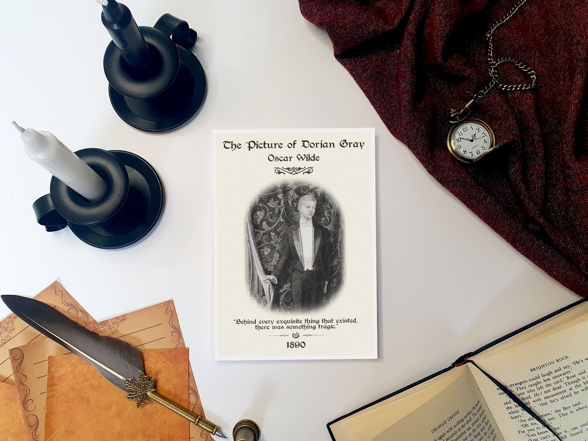 Our bookish print uses artwork from the literary classic that drips with a sad aestheticism. Our Oscar Wilde quote recognises the tragedy of Dorian Gray both within and outside of the novel: the Victorian world was simply not ready for this story. This results in a vintage book poster perfect for readers and book lovers looking for literary gifts to curate an authentic bookish decor experience that stays true to the themes of this literary classic.