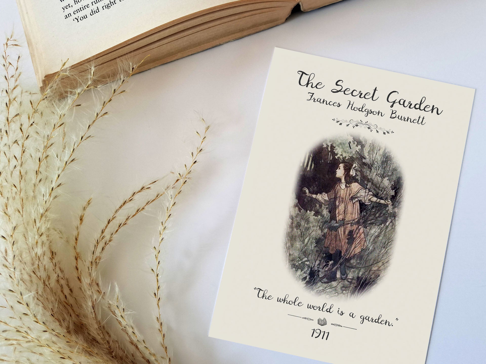 Take Frances Hodgson Burnett's The Secret Garden beyond the shelf with our literary poster. This book cover art print helps home décor bloom - a great bookish gift for the book nook of book lovers!