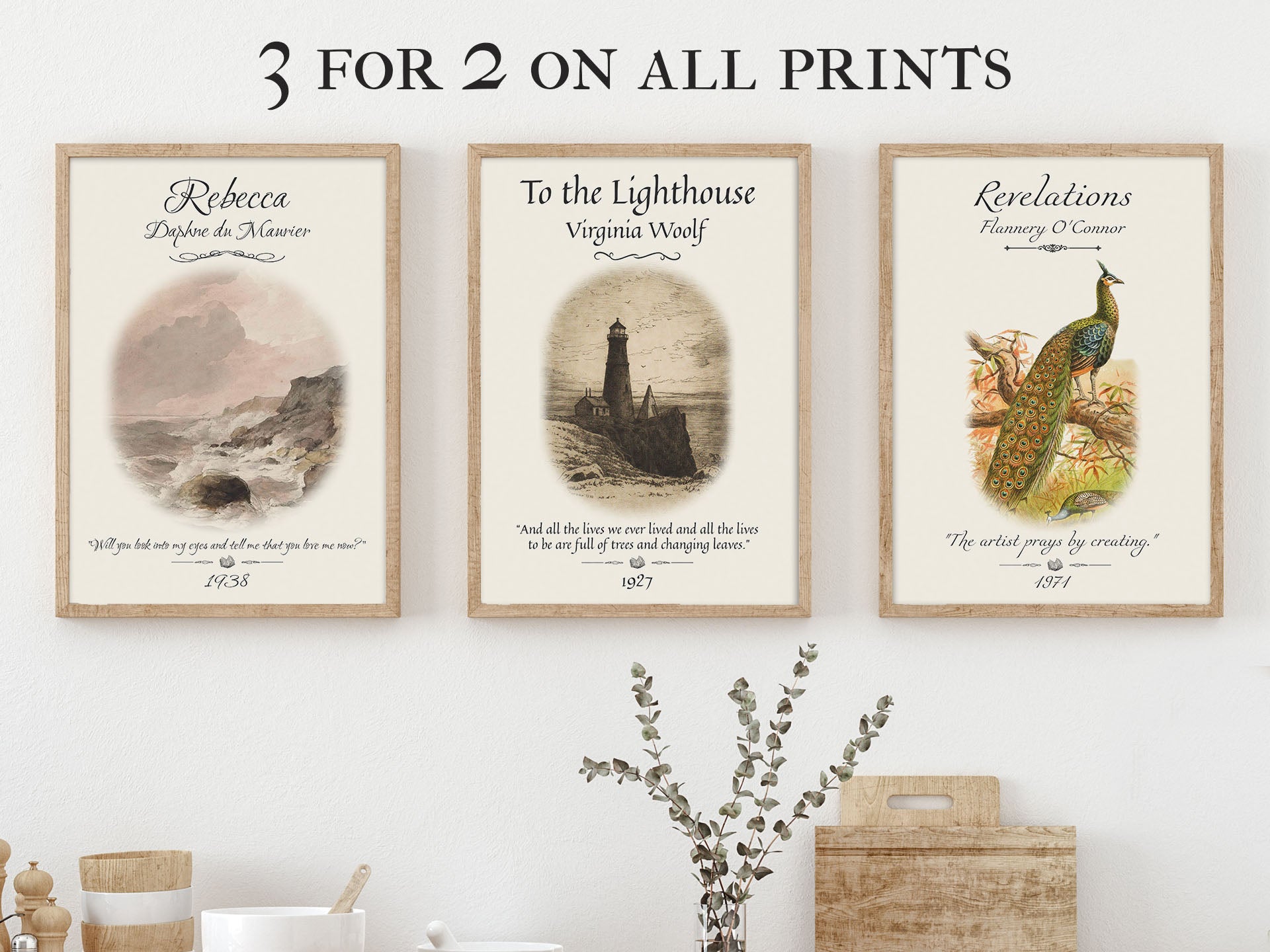 This is one of many 'ways of seeing' we hope to distill in our bookish poster print. We use an enduring lighthouse and contrast this with a Virginia Woolf quote describing the continuous march of time in the changing of the seasons. Just as a lighthouse stands on a coastline battered with shifting tides, there is a reassuring solidity in the constancy of movement and change. This results in a vintage book poster perfect for readers and booklovers looking for literary gifts to curate an authentic bookish decor experience that stays true to the themes of this classic literature.